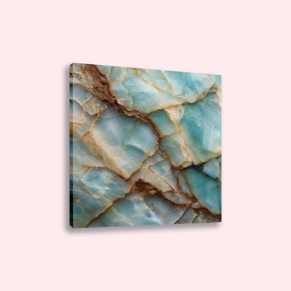 Door de combinatie van het marmerpatroon en de zachte aqua tinten ontstaat een wanddecoratie die eenvoudig te combineren is met verschillende interieurstijlen.