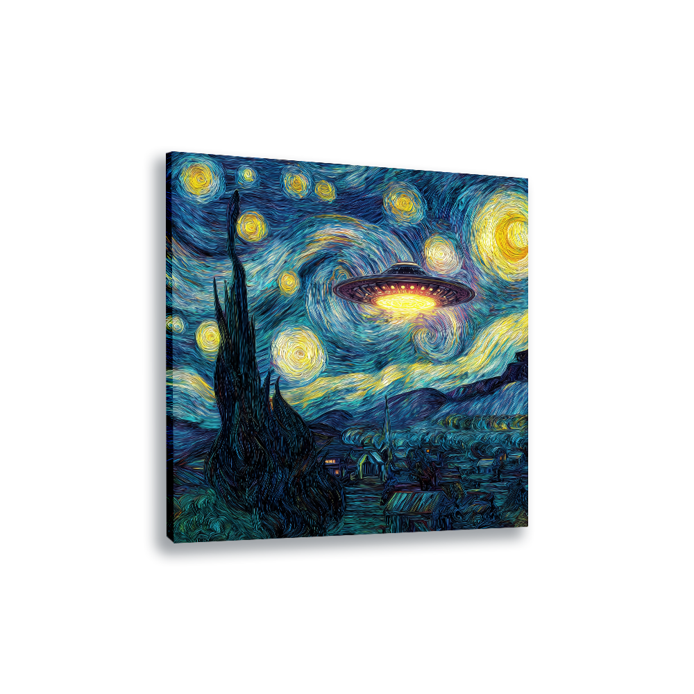 Bestel een Sterrennacht UFO op forex bij Printgeschenk.nl en kies voor een creatieve en eigentijdse twist op een iconisch kunstwerk. Dit vaste ontwerp combineert het herkenbare wervelende sterrenlandschap met een opvallend UFO-element, wat zorgt voor een speels en verrassend contrast tussen klassiek en futuristisch.